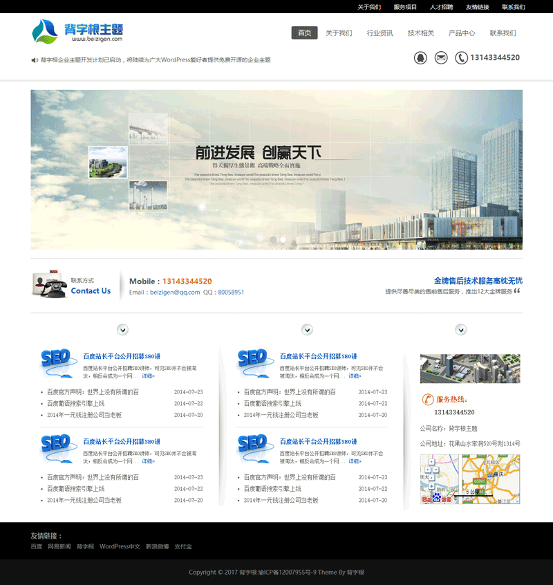 首頁欄目、網站(zhàn)統計(jì)代碼、百度地圖、公司聯系方式等信息均在後台主題控制面闆中設置,LOGO和幻燈片也在主題控制面闆中上傳,非常适合新手使用。