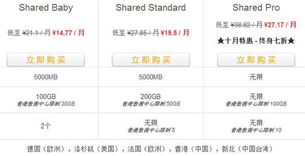 然後你(nǐ)可(kě)以看(kàn)到有三個套餐,分(fēn)别是baby,standard和pro,價格如(rú)下: