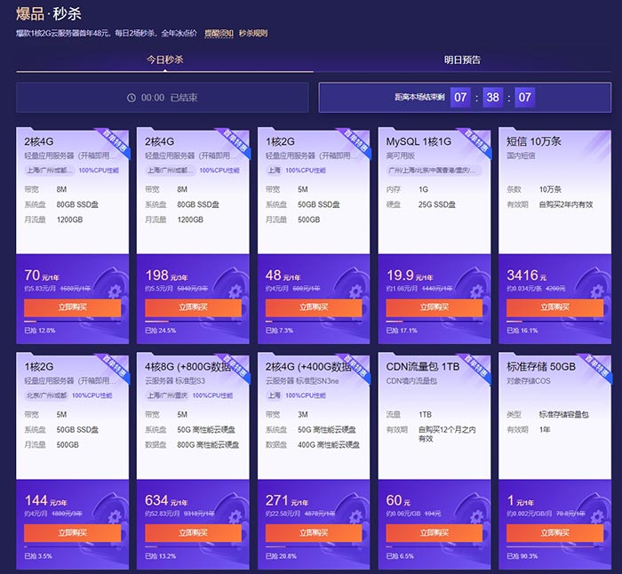 爆品秒殺每日(rì)24小時不間斷/老用戶專享續費低至2.5折起/新老同享特惠百款雲産品3折起