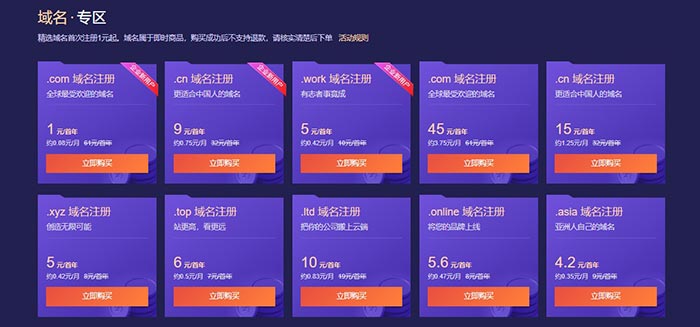 [/alert]新老用戶注冊.COM域名45元,新企業用戶注冊.COM域名1元。其他(tā)後綴落櫻不建議(yì)注冊。