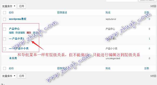 将鼠标置于分(fēn)類名稱的上面,就(jiù)可(kě)以管理(lǐ)菜單:編輯 | 快(kuài)速編輯 | 删除 | 查看(kàn) (如(rú)下圖的“産品中心”所示) ,你(nǐ)可(kě)以分(fēn)别點擊菜單來(lái)看(kàn)看(kàn)。