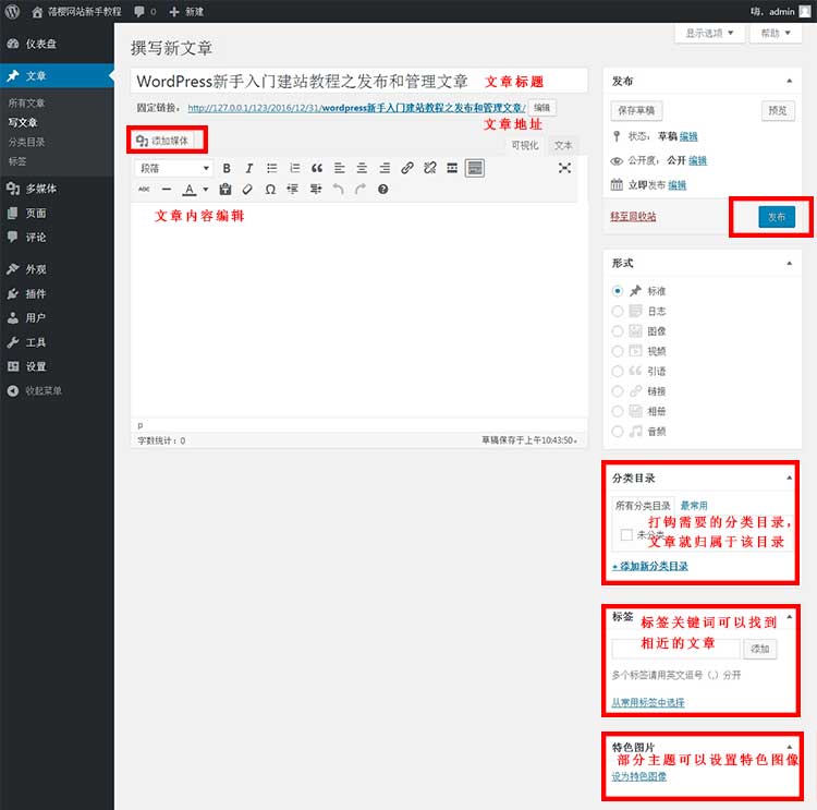 一、标題 – 爲您的文章(zhāng)鍵入一個标題。之後,您将看(kàn)到一個固定鏈接地址,它是可(kě)以編輯的。(需要主機(jī)或者服務器支持僞靜(jìng)态,之後落櫻會有詳細介紹。)